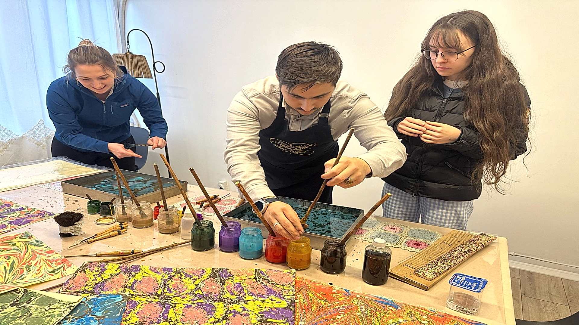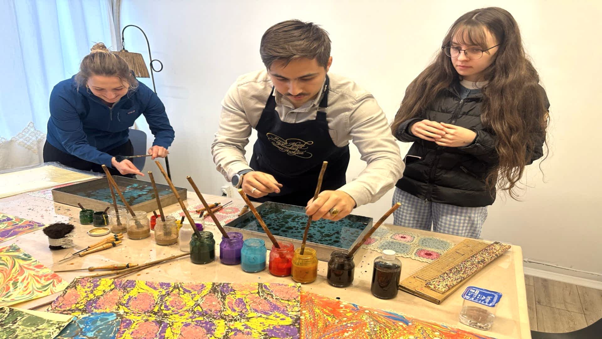Practical Experience - Watch the colours dance on the water as you learn Ebru techniques step by step with expert guidance.